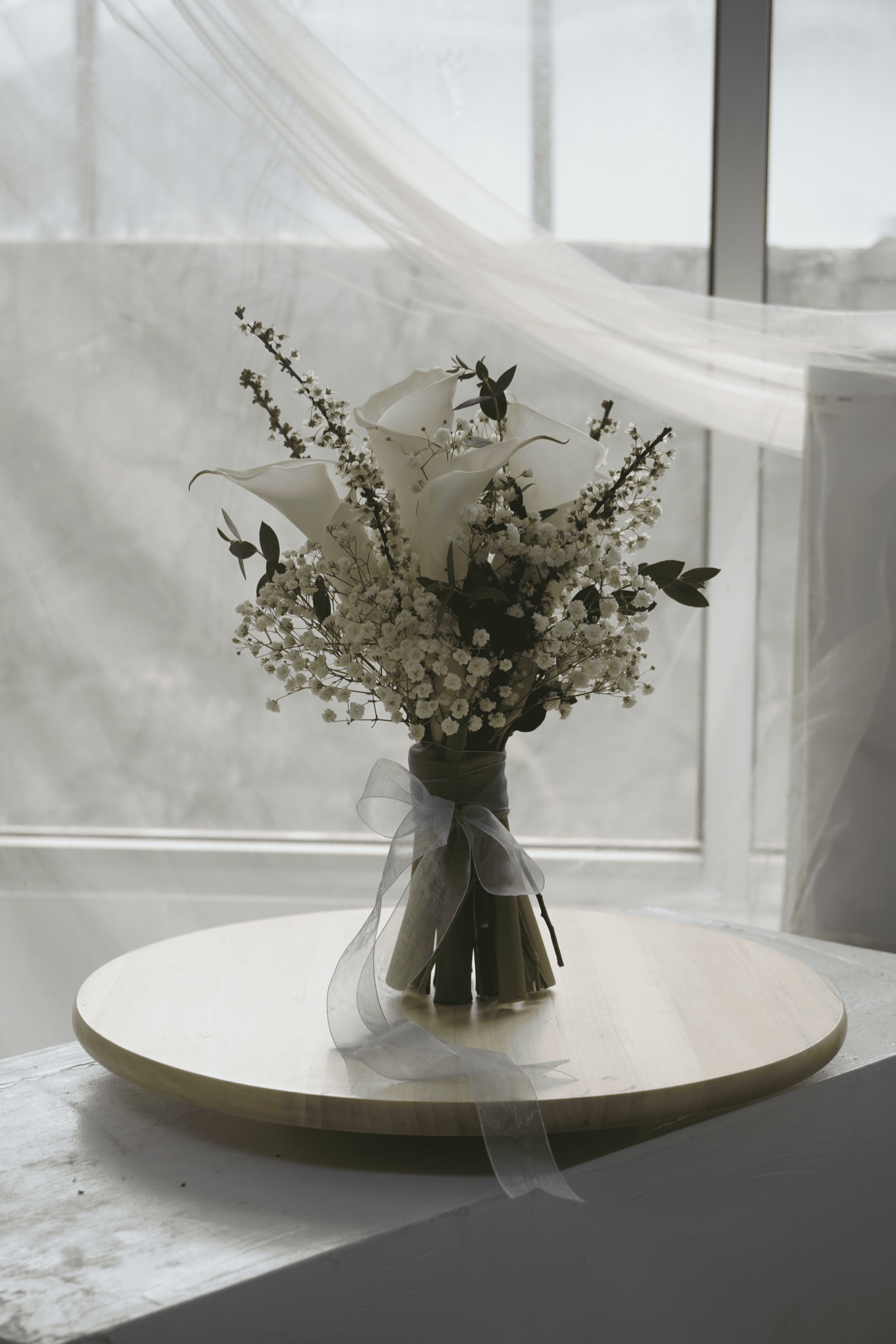 Calla lily dikenal sebagai simbol kemurnian, kesetiaan, dan keanggunan, menjadikan buket ini pilihan sempurna untuk momen sakral pernikahan. Dibalut pita organza lembut, buket ini tampil klasik dan sophisticated tanpa kesan berlebihan.
